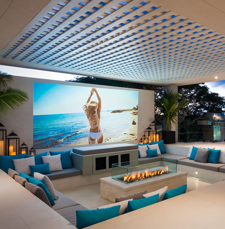 When the sun sets, the outdoor entertainment space is a popular spot to enjoy streaming your favorites movies, shows, and sporting events.